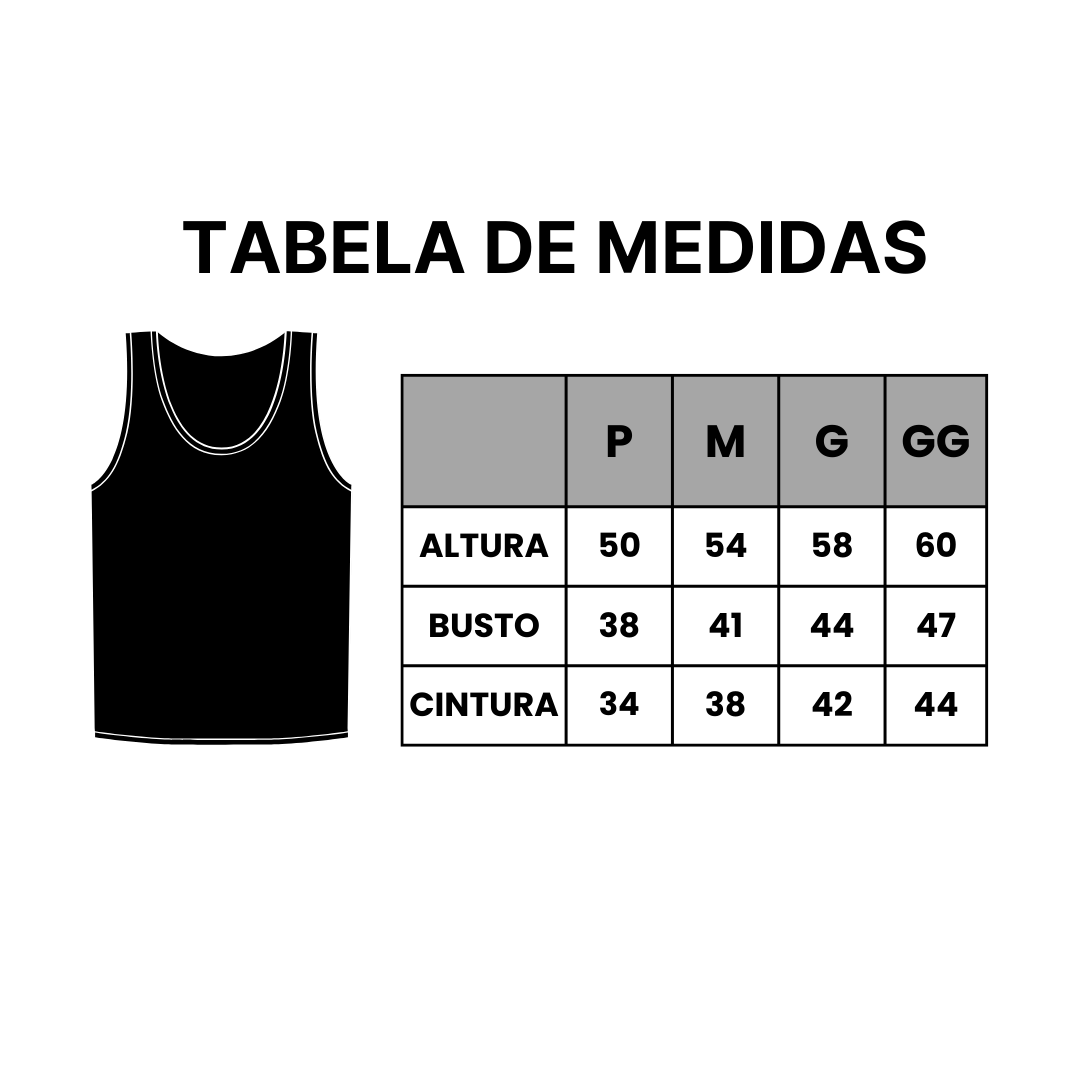 Modelagem: Tradicional e gola”O” toque macio, cavas regulares, caimento ajustado ao corpo.